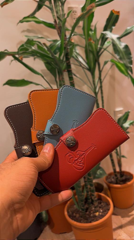 محفظة ريش العود مصنوعة من الجلد الصناعي.